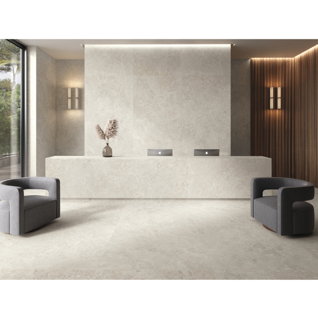 אריח פורצלן בפורמט ענק של 120X120 ס"מ ובגימור בז' מתאים לריצוף וחיפוי פנים וחוץ כאחד, במרחבים הדורשים עמידות גבוהה ואסתטיקה מודרנית. הגודל הדרמטי של האריח מפחית קווי רובה ומעניק תחושת מרחב רציף. המוצר חזק במיוחד, עמיד בשחיקה, וקל לניקוי ותחזוקה.