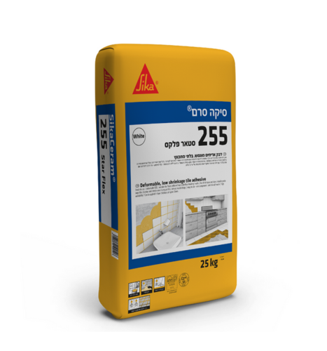 סיקה סרם 255 סטאר פלקס הוא דבק אריחים צמנטי חד-רכיבי וגמיש, אידיאלי להדבקת אריחים גדולים במיוחד על קירות ורצפות, פנים וחוץ. הדבק עשיר בפולימרים ומציע חוזק הדבקה גבוה, עבידות מעולה וזמן עבודה מקסימלי. הוא מתאים לכל סוגי האריחים (כולל אריחים סופגים), חדרים רטובים, מרפסות ובריכות שחייה, ונושא תו תקן ירוק.