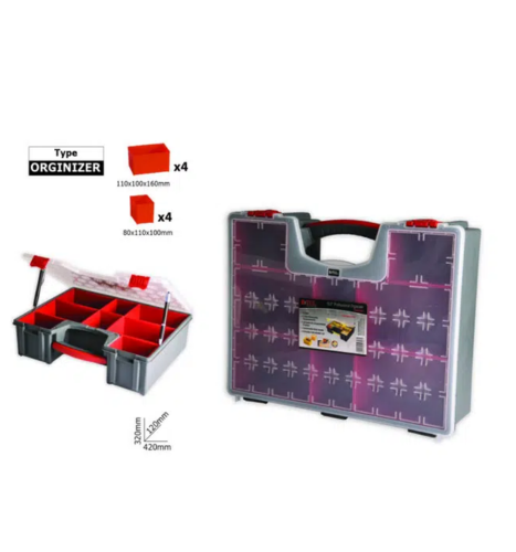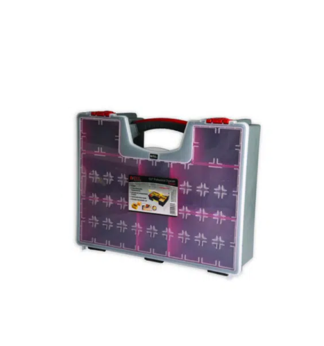 אורגנייזר רחב לאחסון מקצועי ומתקדם שמיועד לסדר וארגון מושלם של ברגים, אומים ואביזרים קטנים. המוצר עשוי מפוליקרבונט איכותי הידוע בעמידותו הגבוהה למכות ושברים, וכולל 8 תאים נשלפים שמאפשרים גמישות ונוחות עבודה מרבית. השקיפות המלאה של המכסה והתאים מאפשרת זיהוי מהיר של התכולה, מה שהופך אותו לכלי עזר חיוני בכל סדנה, מוסך או לשימוש ביתי.