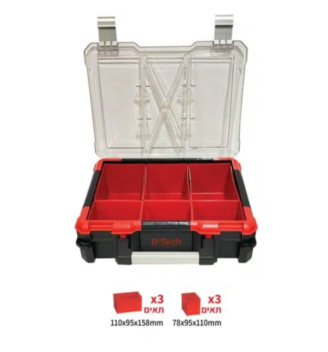 אורגנייזר כולל 6 תאים נשלפים גדולים במיוחד לארגון חלקים וחומרי חיבור, מכסה שקוף מחוזק לזיהוי מהיר של התכולה וידית נירוסטה עבה לנשיאה נוחה ובטוחה. המבנה הקשיח ומנגנון הסגירה הכפול מבטיחים עמידות מקסימלית ושמירה על הסדר גם בתנאי שטח קשים. מוצר זה הינו פתרון אחסון מסיבי ועמיד המיועד לטכנאים ואנשי שירות.