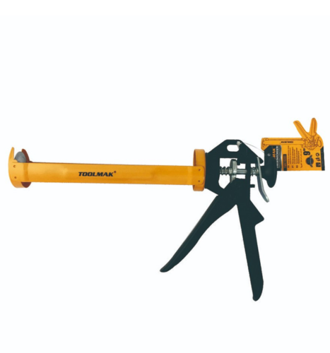 אקדח איטום ברמה מקצועית בעל יחס דחף גבוה שמיועד לטיפול יעיל בחומרים צמיגיים וקשים כמו אקריל, דבקים, אספלט ומלט. הוא מצויד במוט לחץ חלק המבטיח פעולה חלקה, דרישת כוח מופחתת ויישום מדויק.