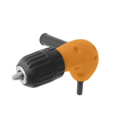 מתאם זווית מקצועי שמיועד לעבודה במקומות צפופים וקשים לגישה שבהם למקדחה רגילה אין אפשרות להיכנס. המתאם עשוי מחומרים איכותיים ועמידים ומצויד בידית אחיזה דו-צדדית לשיפור היציבות והדיוק בעת הקידוח. זהו כלי חיוני לפתרון בעיות בהתקנות, נגרות ותיקונים בפינות ובחללים קטנים.