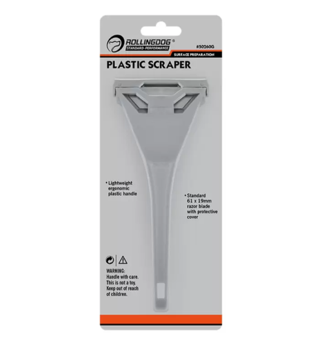 סקרייפר שימושי עם ידית פלסטיק, המיועד להסרת שאריות ולכלוך מבלי לשרוט את המשטח, בזכות מיקום הלהב בזווית מושלמת. המארז כולל להב ברוחב $61 \, \text{mm}$ עם כיסוי מגן, והלהב הסטנדרטי ניתן להחלפה בקלות.