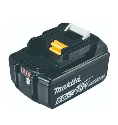 סוללת ליתיום-יון עוצמתית מבית MAKITA מספקת מתח של 18V וקיבולת שיא של 6.0 אמפר/שעה (Ah). סוללה זו מעניקה זמן עבודה ממושך במיוחד (עד פי שניים יותר בהשוואה לסוללת 3.0Ah). היא מתאימה באופן בלעדי לכלי העבודה של MAKITA. הסוללה כוללת הגנה מתקדמת לשימוש בטוח ואמין, ומצוידת במחוון L.E.D. בנוסף היא נטענת במהירות של כ-55 דקות (במטען מהיר).