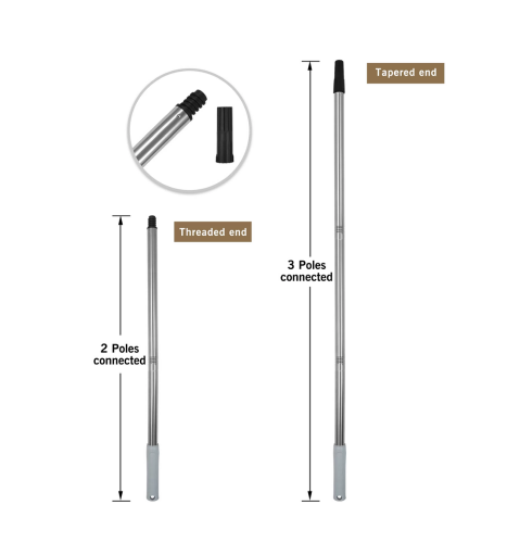 מוט הארכה קל משקל ונוח לשימוש מורכב מ-3 חלקים המתברגים יחד כדי להוסיף 90 מ"מ לאורך העבודה.