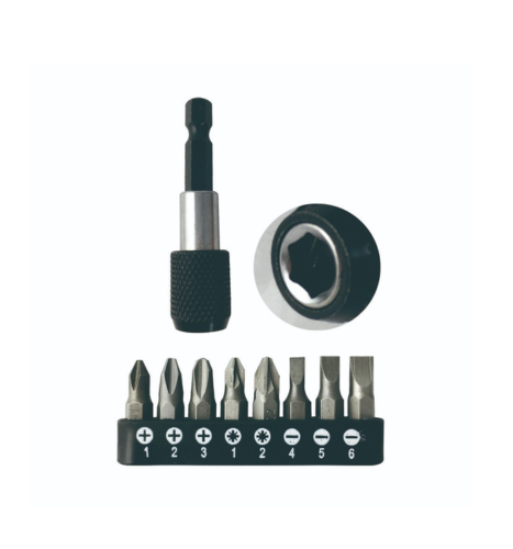 סט ביטים מקצועי וורסטילי הכולל 8 ביטים נפוצים ומאריך מגנטי חזק. הסט תוכנן לתת מענה רחב למגוון עבודות תחזוקה, החל מתיקונים ביתיים יומיומיים ועד לעבודות מקצועיות במוסכים, בתי מלאכה וטיפול ברכבים ומשאיות. הביטים עשויים פלדת S2 איכותית המבטיחה עמידות יוצאת דופן וחיים ארוכים לכלי.