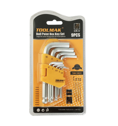 זהו סט של 9 מפתחות אלן קצרים שמיוצרים מפלדת כרום-ונדיום אשר מצופה כרום לעמידות בפני חלודה. התכונה המרכזית של מפתחות אלן אלו הן הראש הכדורי המאפשר עבודה והנעת ברגים בזווית מה שמקל על הגישה למרחבים מוגבלים. הסט כולל שלושה אורכים שונים ומגיע במארז צירים מסומן לנשיאה נוחה.