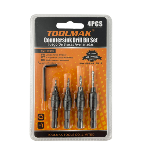 סט מקדחי שקע (פזירה) מקצועי הכולל 4 חלקים, המאפשר קידוח חור מוביל ושקיעה עבור ראש הבורג בפעולה אחת נקייה ומדויקת. המקדחים עשויים פלדת HSS איכותית המבטיחה אורך חיים ממושך וחיתוך חד במגוון חומרים כמו עץ ופלסטיק. הכלי המשלים לנגרות והרכבת רהיטים למראה סופי מקצועי ואסתטי.
