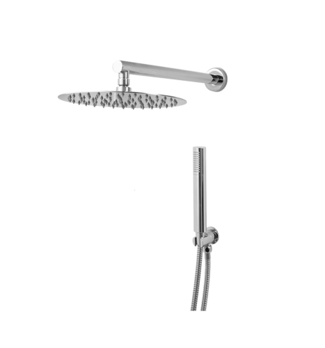סט רחצה יוקרתי בגימור כרום מבריק שמעניק למקלחת מראה מודרני ונקי. הסט משלב ראש גשם רחב לחוויית רחצה מפנקת יחד עם מזלף ידני פונקציונלי הכולל לחצן מצבים לנוחות מרבית.