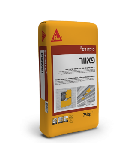 סיקה רפ POWER הוא צמנט פולימרי חד-רכיבי ועמיד סולפטים מיועד במיוחד לשיקום בטונים בשכבות עבות. החומר בעל חוזקי לחיצה וכפיפה גבוהים, אינו שוקע או מתכווץ, ומספק הידבקות מצוינת לתשתית. אידיאלי לתיקון בטון מעל ברזל זיון פגוע, השלמת פינות ומילוי פגמים גדולים.