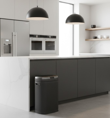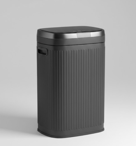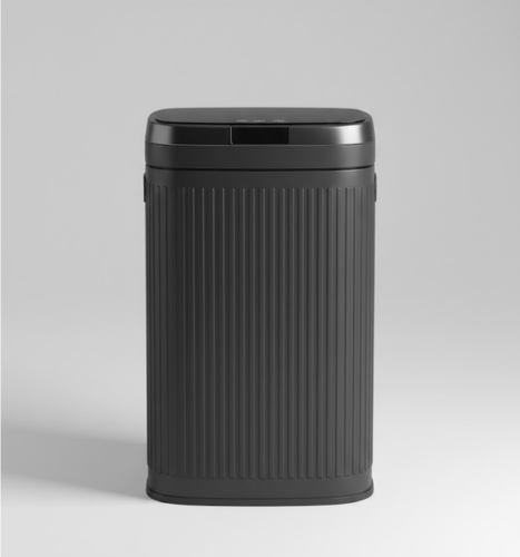 פח אשפה חכם ומעוצב, המשלב טכנולוגיה מתקדמת עם מראה מודרני ונקי. הפח מתאפיין במבנה מלבני עם גימור פסים אנכיים יוקרתי. הוא מיועד לשימוש במטבחים מודרניים, צמוד לאי או לקיר, ומשתלב בצורה אסתטית בחלל הבית.