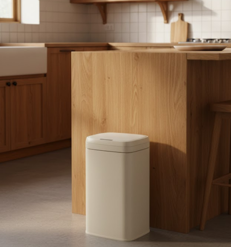 פח אשפה חכם ומעוצב, המשלב טכנולוגיה מתקדמת עם מראה מודרני ונקי. הפח מתאפיין במבנה מלבני עם גימור פסים אנכיים יוקרתי. הוא מיועד לשימוש במטבחים מודרניים, צמוד לאי או לקיר, ומשתלב בצורה אסתטית בחלל הבית.