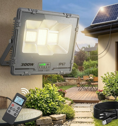 פנס הצפה מקצועי בטכנולוגיית LED מתקדמת, המעניק פתרון תאורה עוצמתית ללא צורך בחיבור לחשמל. הפנס מצויד בפנל סולארי חיצוני המאפשר גמישות מרבית בהתקנה, ומתאים במיוחד להארת חצרות, מגרשים, שטחים פתוחים ואתרי בנייה.
